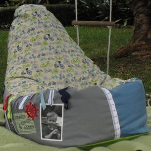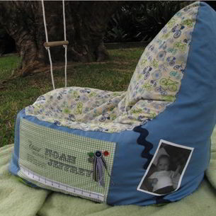 Hand-made using limited edition fabrics, trims and button details...our uniquely personalised, highly original 'Memory Clouds' can now be yours! Available in high or low-back style, our bean bags give you the chance to proudly showcase your boy's journey through childhood and create a little cloud of calm that he will confidently retreat to!