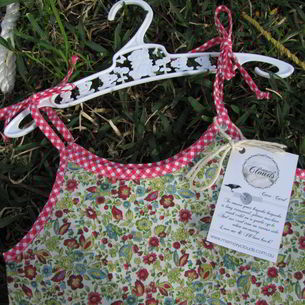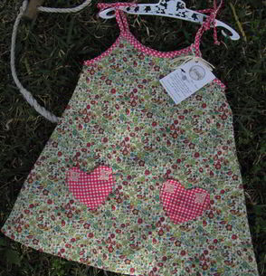 Hand-made using limited edition fabrics and lace detail...our gorgeous A-line Sun Dresses with self-tie straps make the perfect little dress for warm summer days! We personalise your order by embellishing one of the heart shaped pockets with 'Miss' followed by her name or initials.